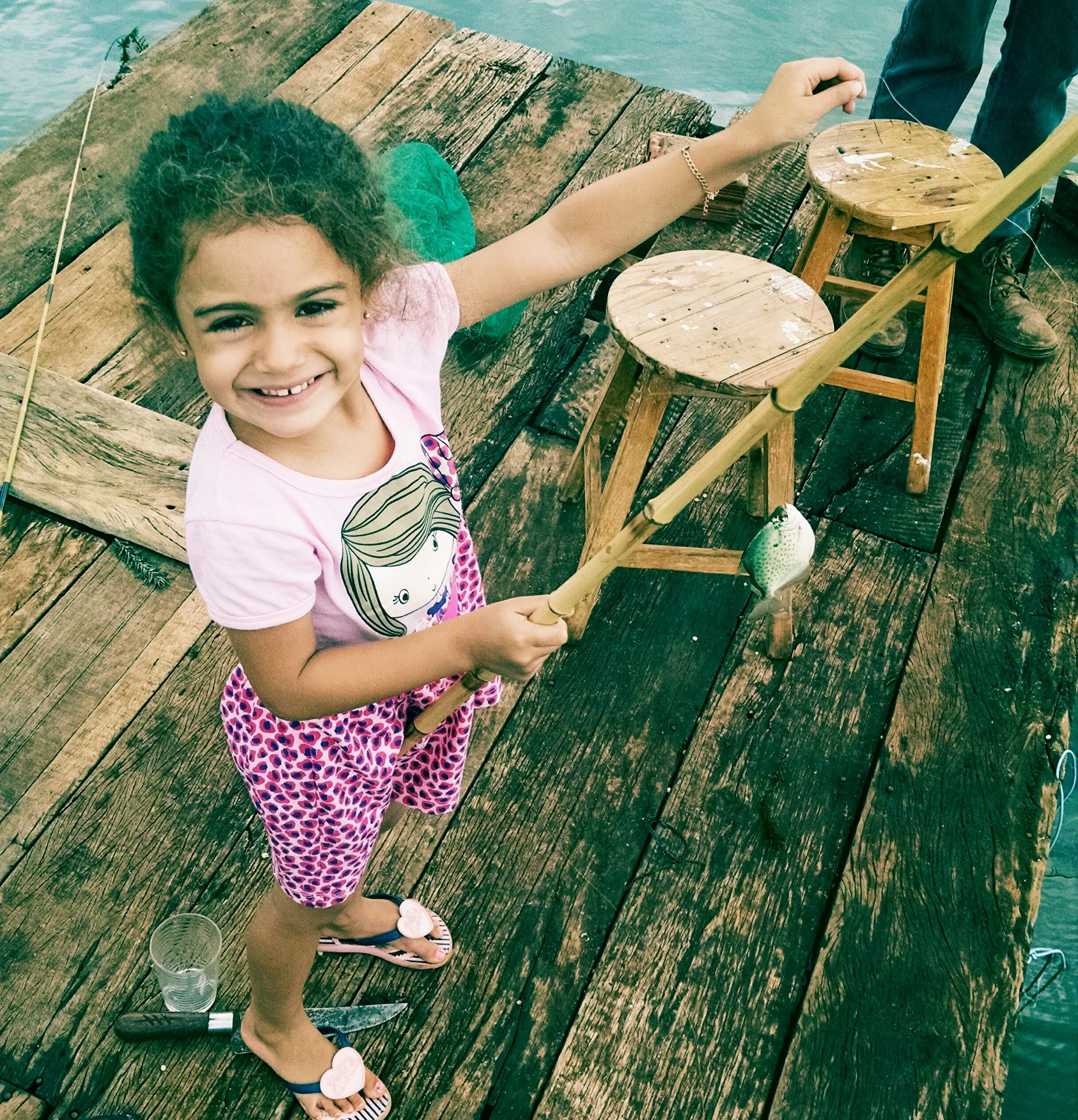 Nenhum perigo nessa foto, o peixe não é uma piranha e a faca q ela ta pisando em cima claramente esta cega